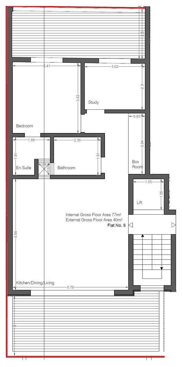 MELLIEHA - Still on plan is this 1 Bed + Study PENTHOUSE circa 117sqm being highly finished excluding doors and bathrooms. Property consist of an open plan K/L/D room, 1 double bedroom, 1 study room (bedroom), 2 bathrooms, box room, back and front terraces. Airspace included. To be completed by Dec 2027. Optional interconnected garages from €55,000. Freehold.